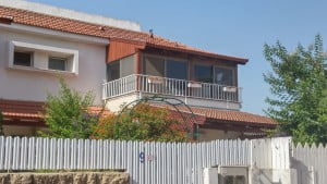 סגירת מרפס על ידי פרגולת עץ עם רעפים כולל ויטרינות-1